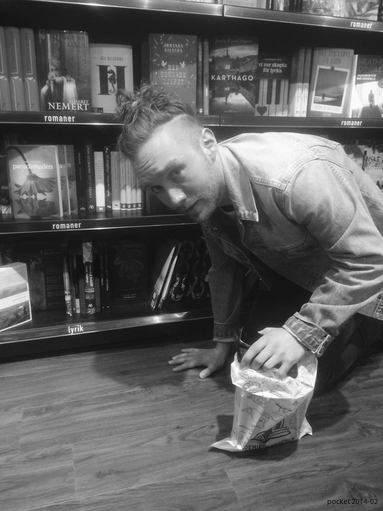 Kanske skulle sortimentet se annorlunda ut om bara en bok av varje författare exponeras samtidigt. Kunnig personal som vet mycket om författare och kan ge råd. Kanske lite reklam för lyrik så att man slipper krypa på golvet för att hitta Tranströmer (bilden). Eller sprida mer kunskap om utländska författare. Tanken svindlar...